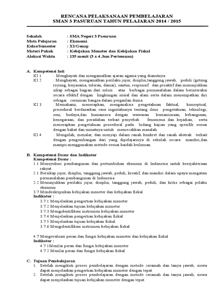 Ekonomi Esis Kur 2013 Rpp Kelas Xi Bab 07
